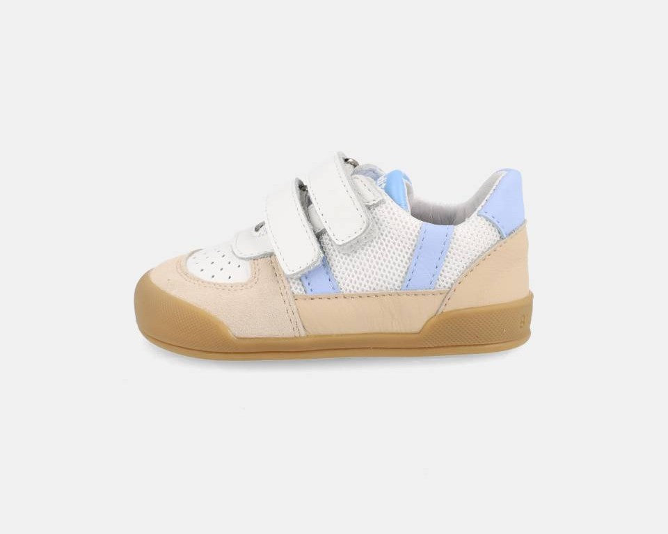 A marca espanhola Blanditos by Crio's combina a elegância dos materiais naturais com todos os benefícios do calçado barefoot. Confeccionados em couro macio e respirável, oferecem durabilidade e conforto desde o primeiro momento. As sapatilhas Blanditos têm sola fina, flexível e zero-drop, garantindo que o pé se desenvolve livremente e sem restrições. A ampla ponteira anatómica permite aos dedos espalharem-se de forma natural, enquanto o fecho em velcro ajustável facilita o calçar e incentiva a autonomia dos mais pequenos.