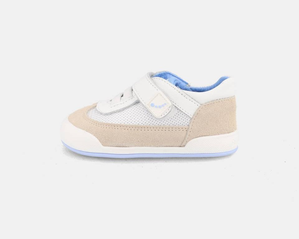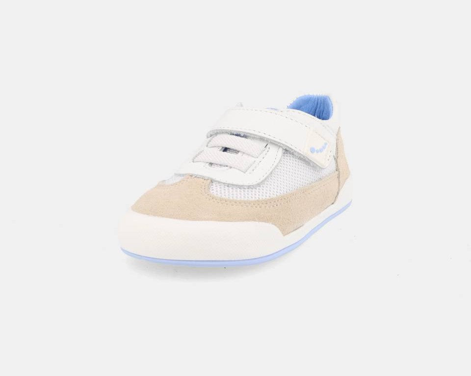 A marca espanhola Blanditos by Crio's combina a elegância dos materiais naturais com todos os benefícios do calçado barefoot. Confeccionados em couro macio e respirável, oferecem durabilidade e conforto desde o primeiro momento. As sapatilhas Blanditos têm sola fina, flexível e zero-drop, garantindo que o pé se desenvolve livremente e sem restrições. A ampla ponteira anatómica permite aos dedos espalharem-se de forma natural, enquanto o fecho em velcro ajustável facilita o calçar e incentiva a autonomia dos mais pequenos.